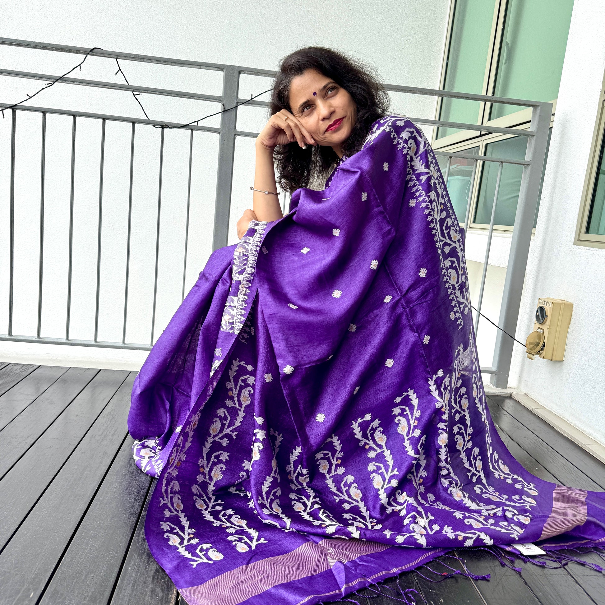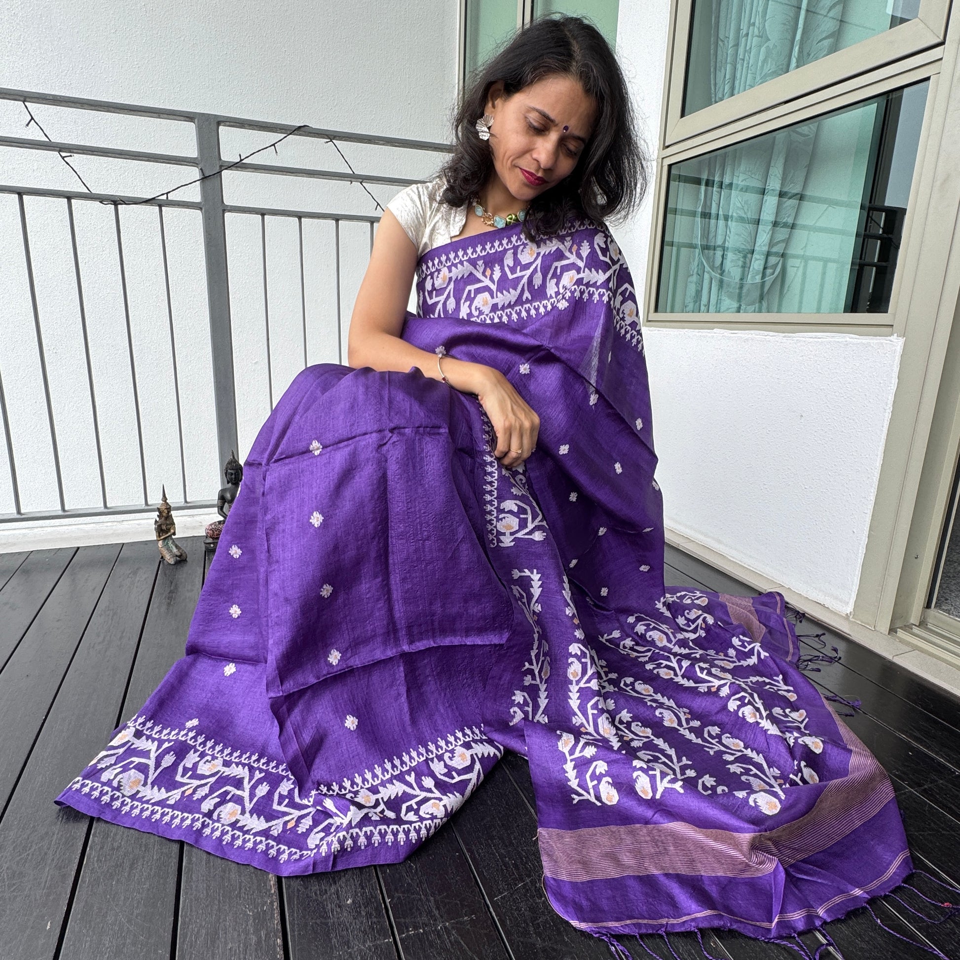 Amethyst: Purple Tussar Silk Jamdani Saree