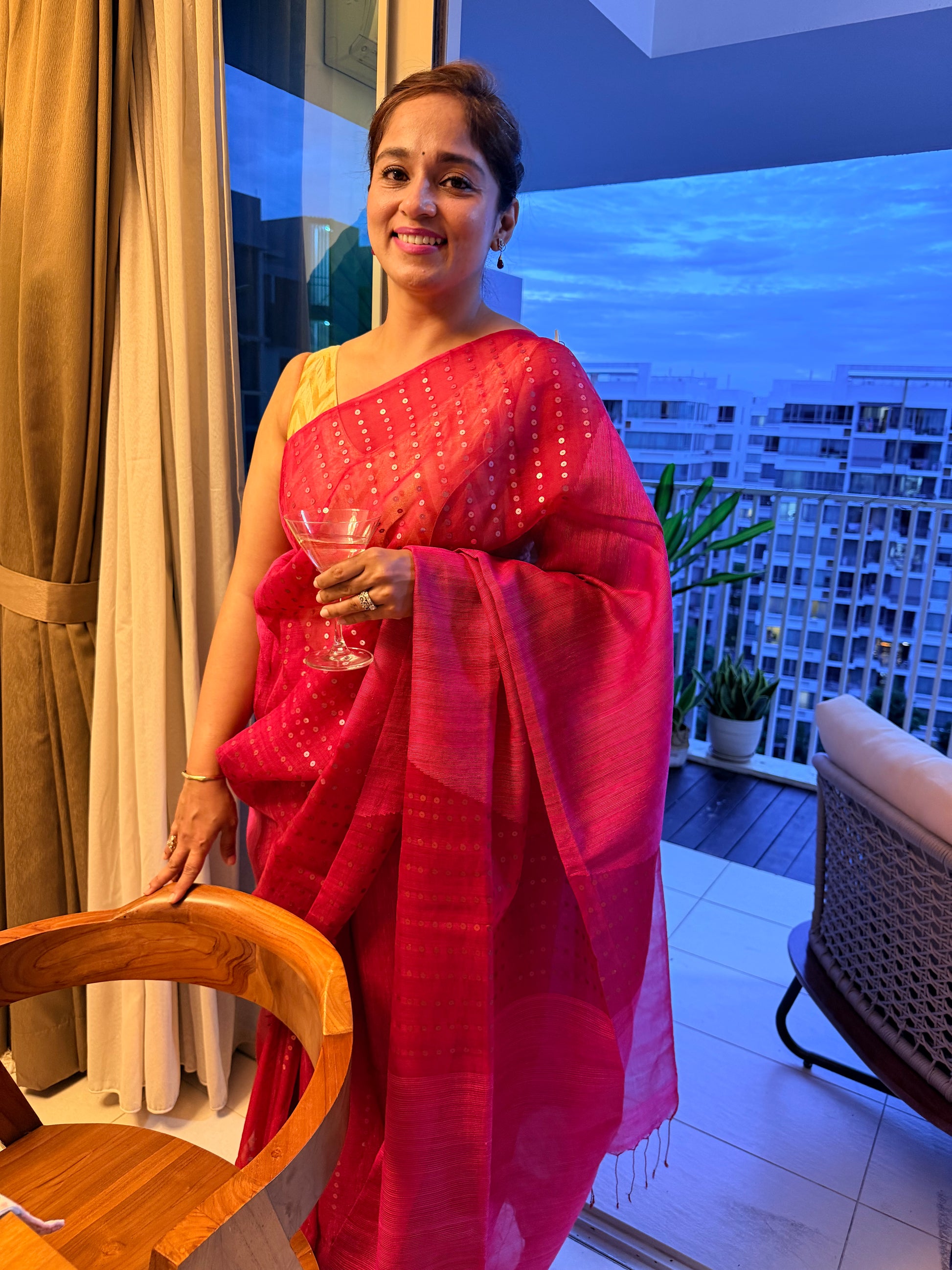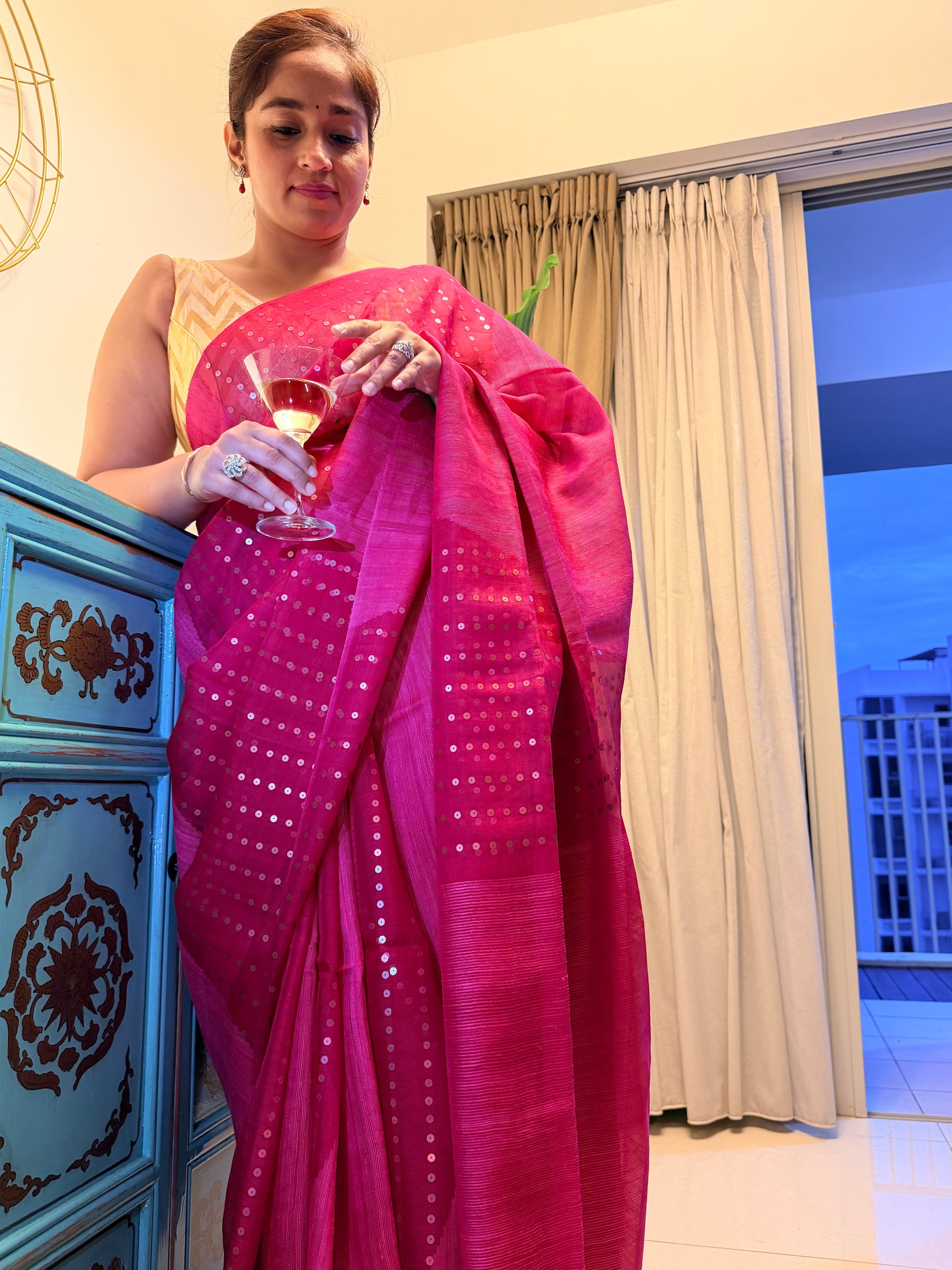 Gulnaar: Pink Matka Silk with Sequins Saree