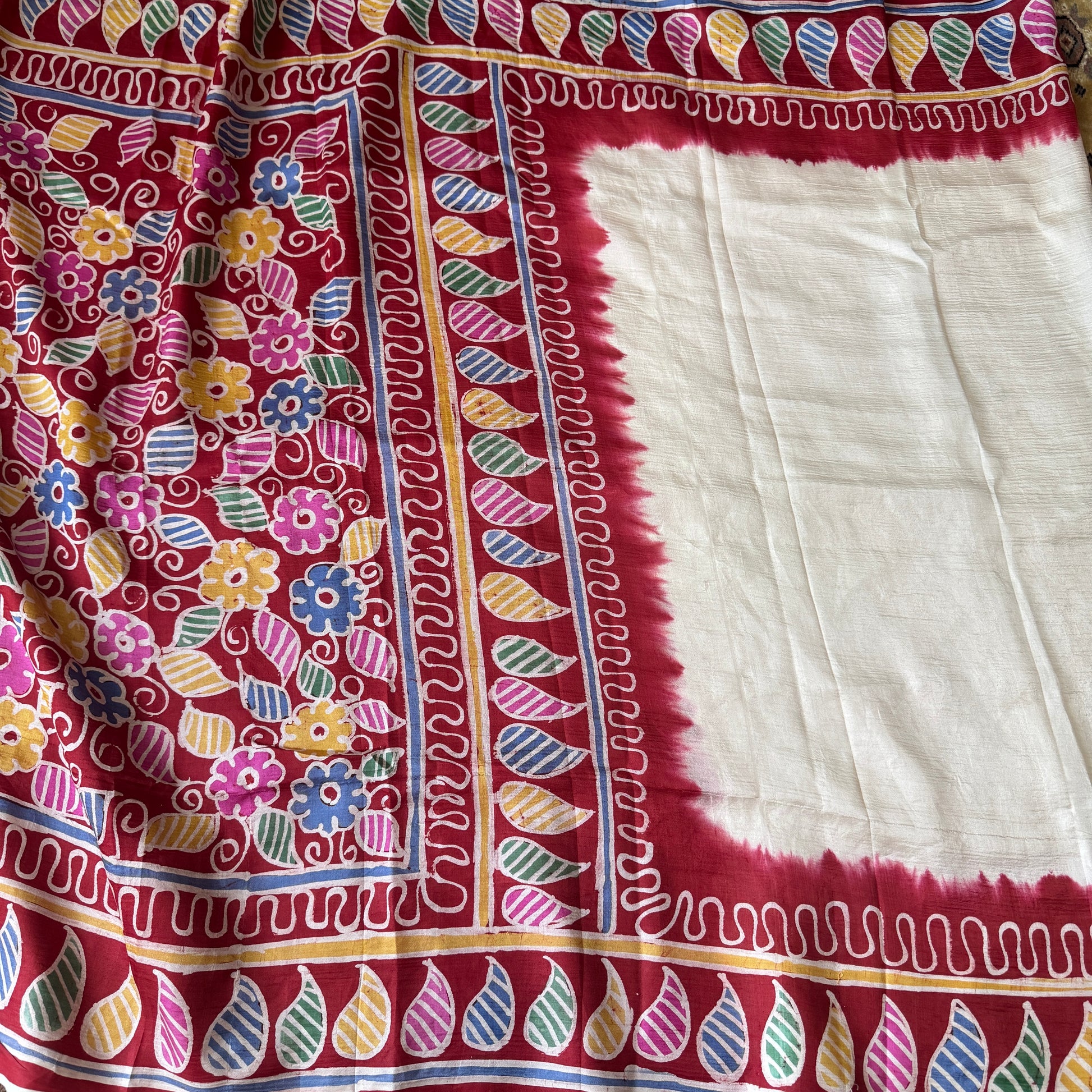 Colors: White base with red border and multicolor batik motifs